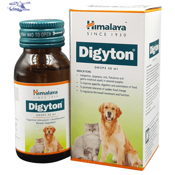 Most often prescribed by vets in cases of indigestion. Digyton is formulated to facilitate the secretion of amylolytic, proteolytic and lipolytic enzymes which catalyse digestion. One of its chief ingredients is Dill Oil which is a carminative that relieves flatulence. It also has cardamom to ease bloated tummies. It is commonly prescribed for tummy upsets caused by changes in diet and food.