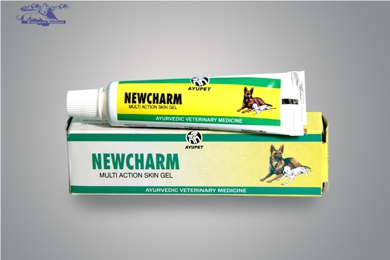Newcharm gel is a multiaction skin preparation for topical use on companion animals, suffering from various skin affections.